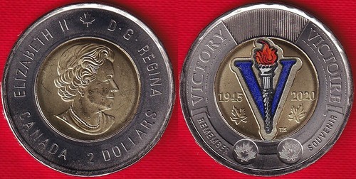 Canada 2 Dollars 2020 75y Since The End Of Wwii Bimetallic Coloured Unc Ebay